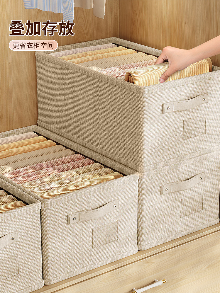 衣類収納ボックス、家庭用ワードローブ、衣類、ズボン用の層状整理ボックス、綿とリネンの折りたたみ収納バスケットアーティファクト