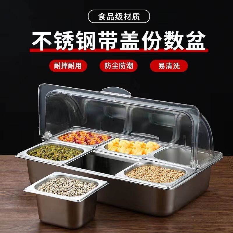 氷粉フルーツ漬け材料箱透明フリップトップステンレス鋼ポット二重層鮮度保持断熱ダストカバー透明カバー
