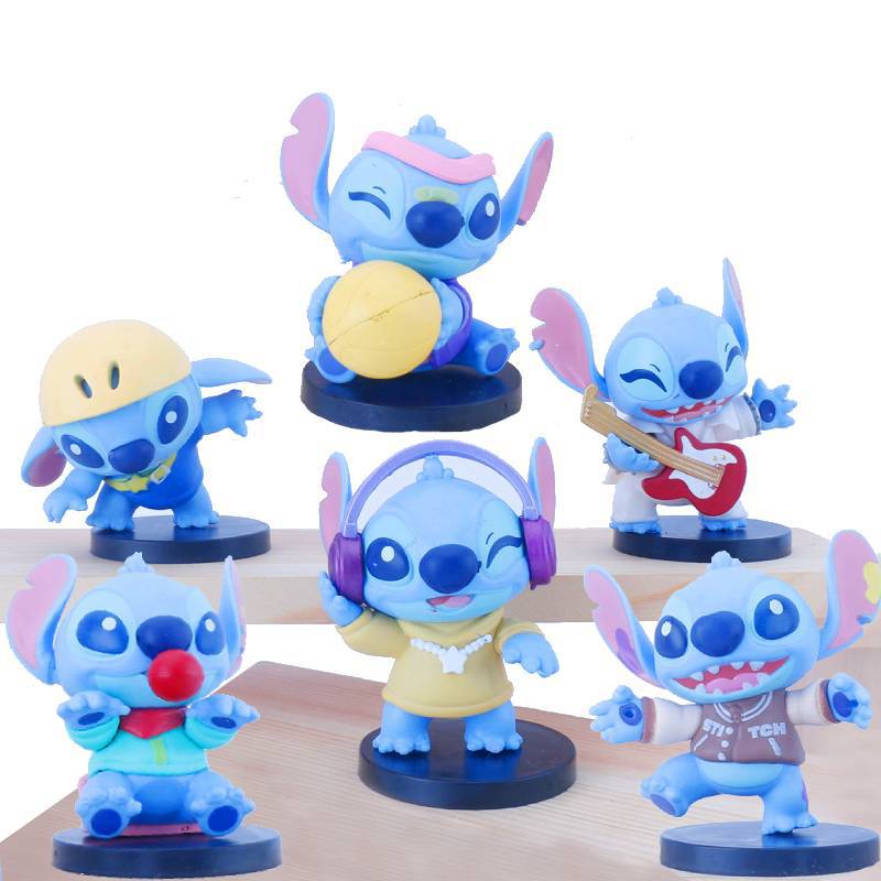 Q版の6種類の星間の宝物の音楽のパーティーのスティッチの手作りの置物の青い大きい耳の犬のケーキの装飾の置物