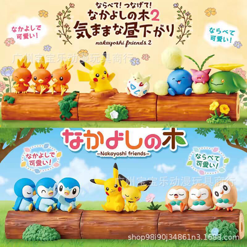 6種類のポケット妖怪の友情の木波加曼木のフクロウの組み合わせの切り株のテーブルの装飾品は盲目の箱を遊びます。