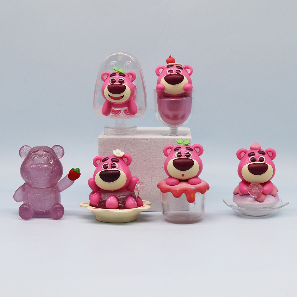 6種類の総動員のイチゴの熊のアイスクリームのおもちゃのぬいぐるみの総動員はケーキを飾っておもちゃを作ります。