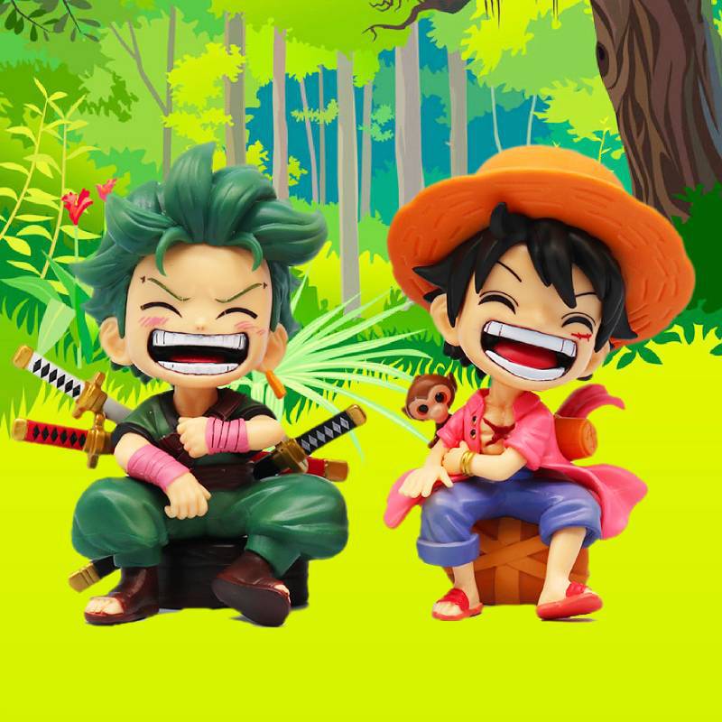子供の頃版海賊王q版路飛索隆座り方gk手は航海王のシーンの公仔の模型の車の置物を作ります。