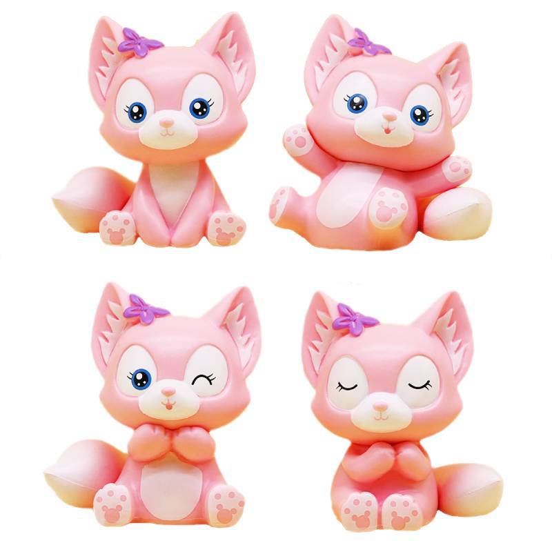 4種類のかわいいネットの赤いベルの小さい狐のピンクのかわいい手の模型のケーキの装飾の置物の車の公仔