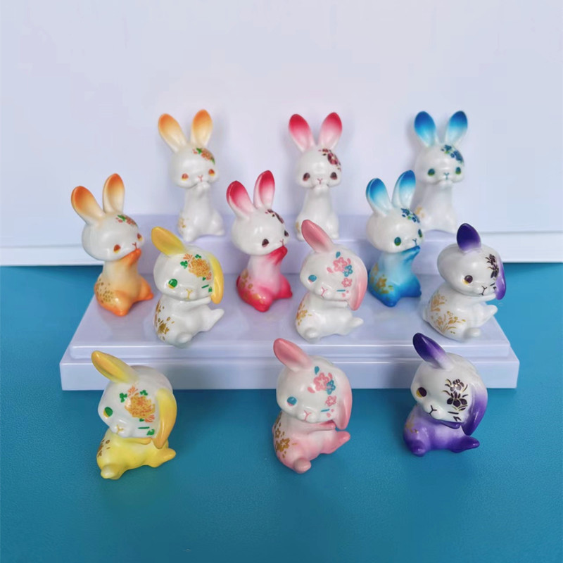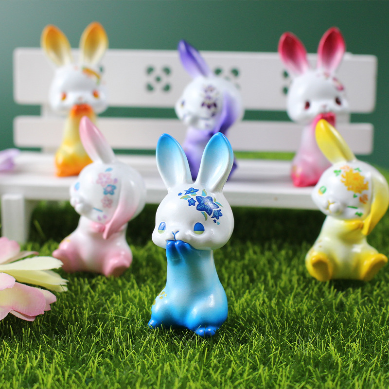 クリームペーストかわいい和风プリントうさぎの花うさぎのぬいぐるみ置物diy手作り焼き饰りフィギュア