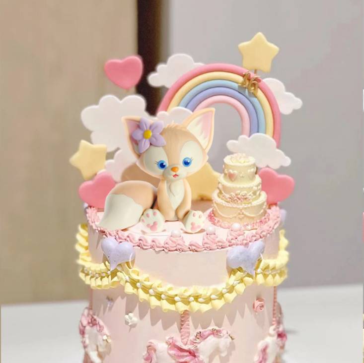 子狐の貝のケーキは装飾を焼いて手を飾って人形のおもちゃの車の子供の誕生日のプレゼントを作って人形をつかみます。