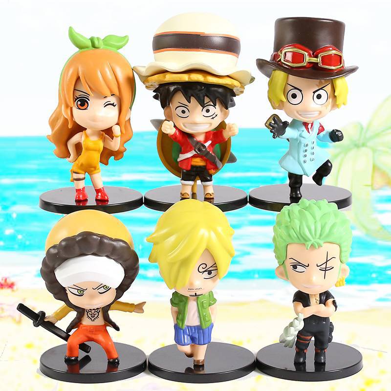 6種類のq版の子供の頃のワンピースのサボの路飛の山治の索隆の娜美の手は模型をして子供を捕まえて機の置物を作ります。