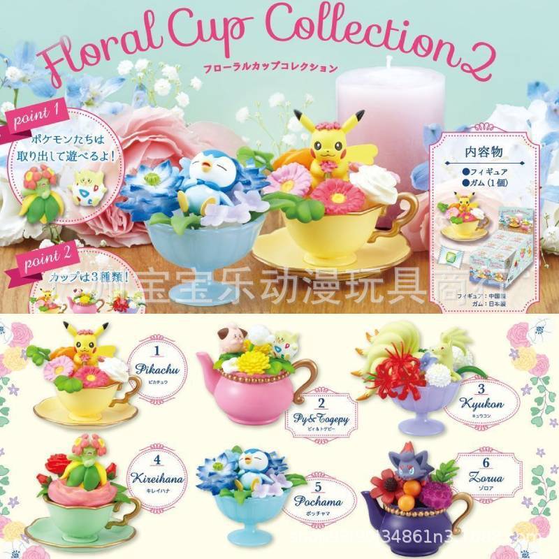 ポケモン九尾ピカチュウ美しい花ゾロア6種生花ティーカップ精霊箱卵ブラインドボックスフィギュア