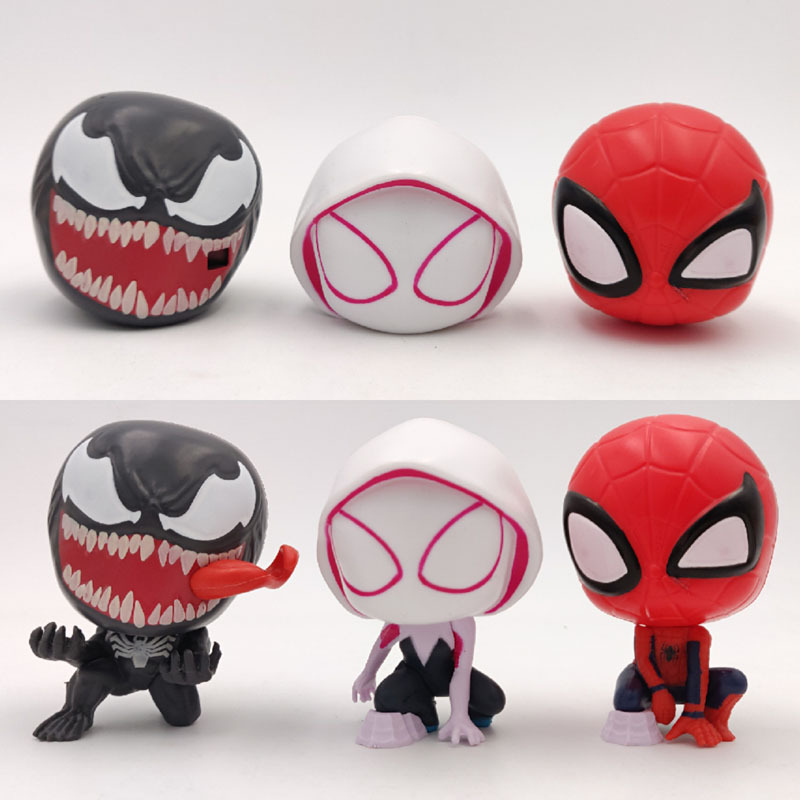 Q版の大きい頭の殻の卵の毒のスパイダーマンの格温の女性のクモを組み立てて人形を組み立ててケーキの装飾を並べます。