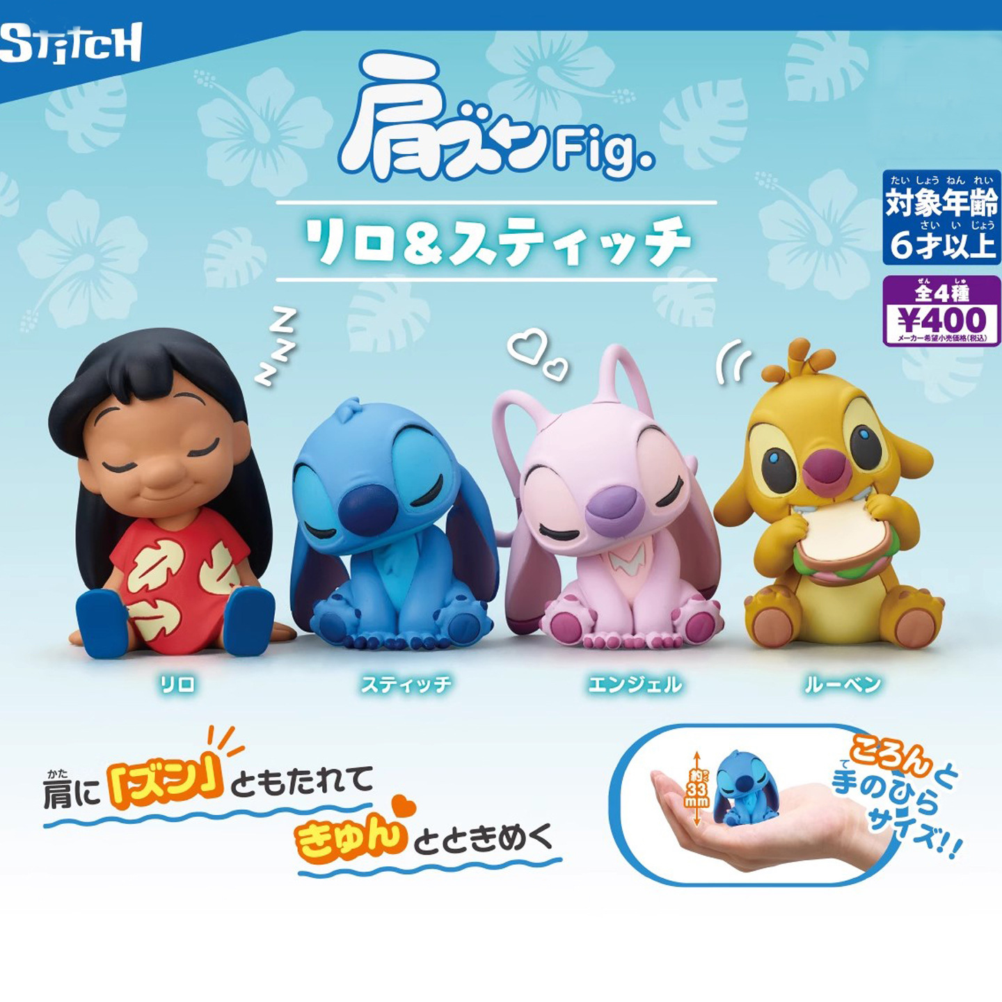 4種類のQ版ガチャガチャ肩掛けスターベイビーリロ・スティッチ・エンジェル・ルーベン睡眠置物フィギュア