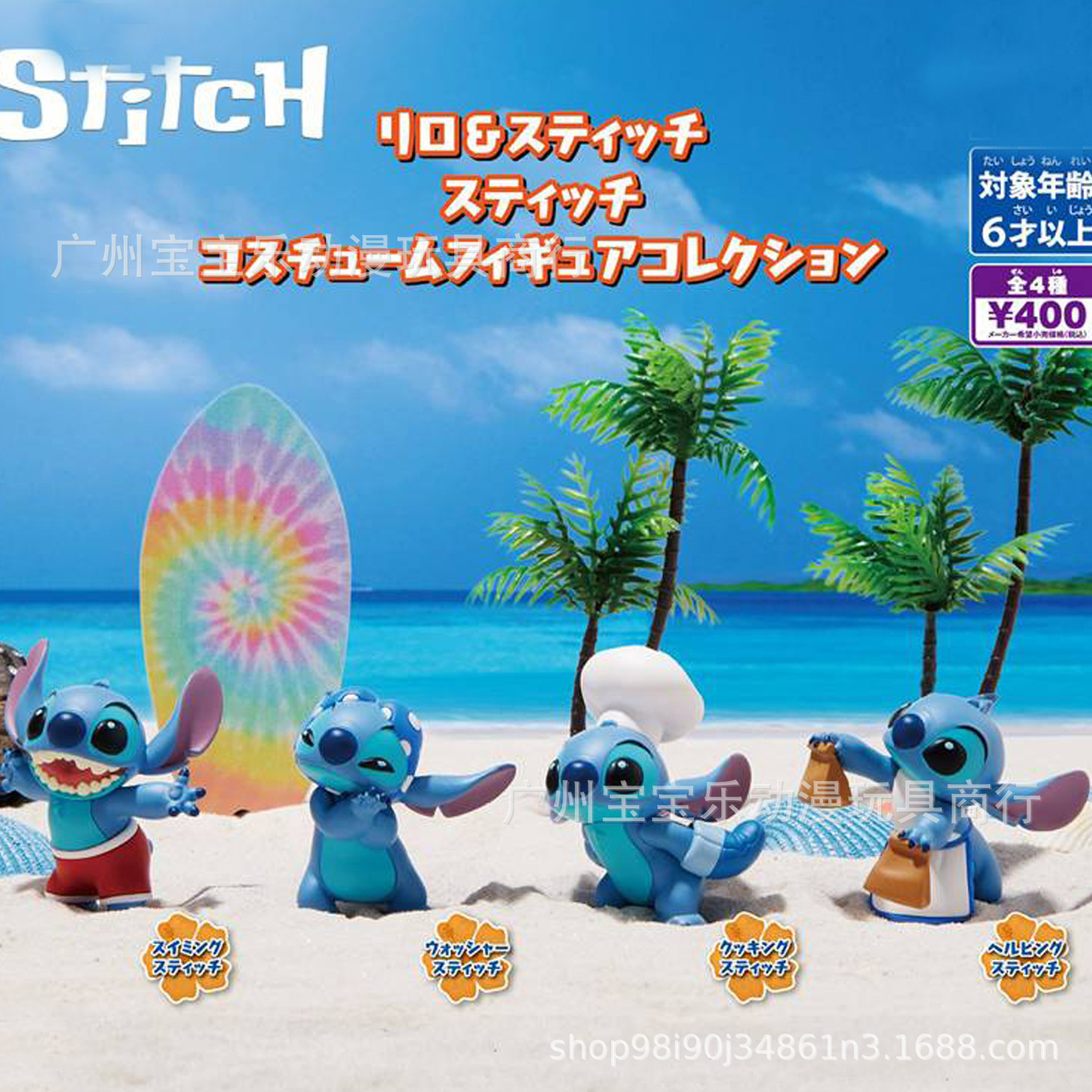 Qバージョン ステッチ サマービーチガシャポン ステッチの多彩な衣装 トレンドの装飾品 人形 おもちゃ 4種類