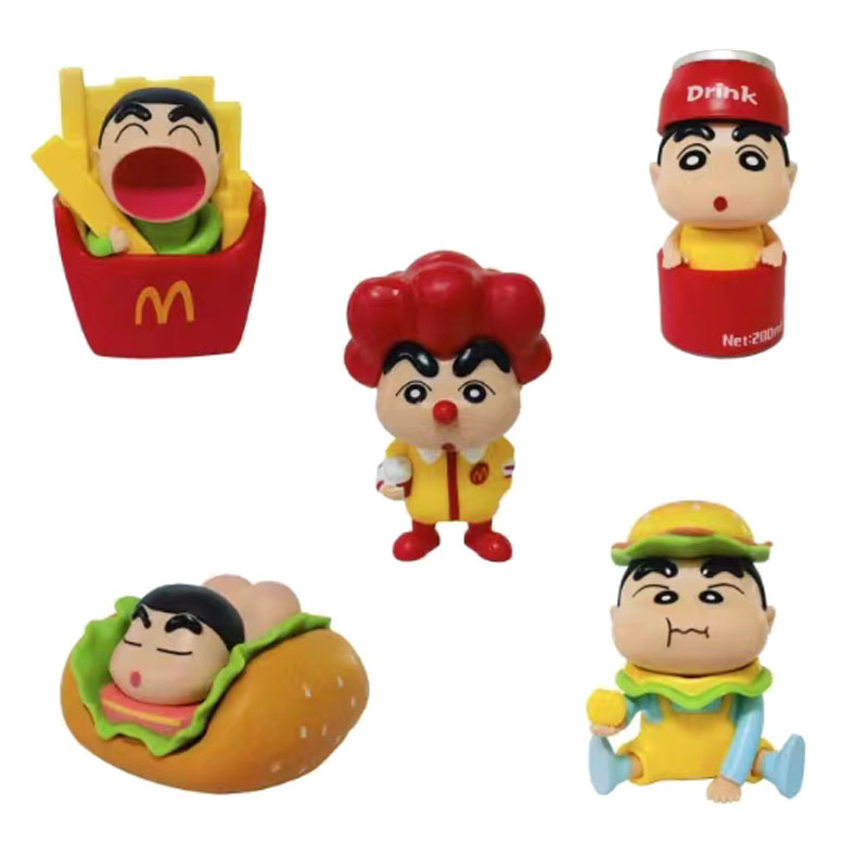 5種類のハンバーガーフライドポテトのコーラワックスは、しんちゃんのぬいぐるみよりも道化師の野原新之助ケーキの装飾品です。