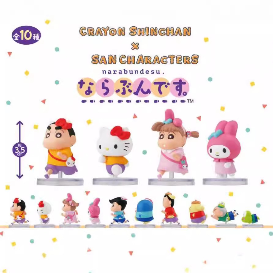 クレヨンしんちゃんの美楽ティが連動して手を並べて走っています。