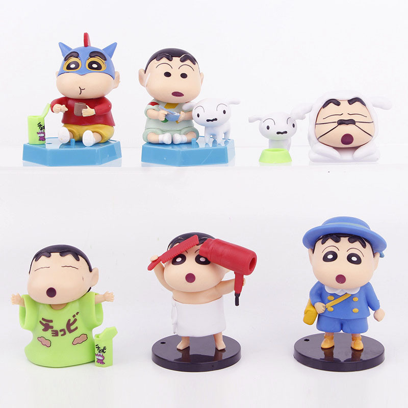 6種類の座り方の愛のクレヨンしんちゃんの手は模型の葵の幼稚園のしんちゃんの公仔のかわいい車の置物を作ります。