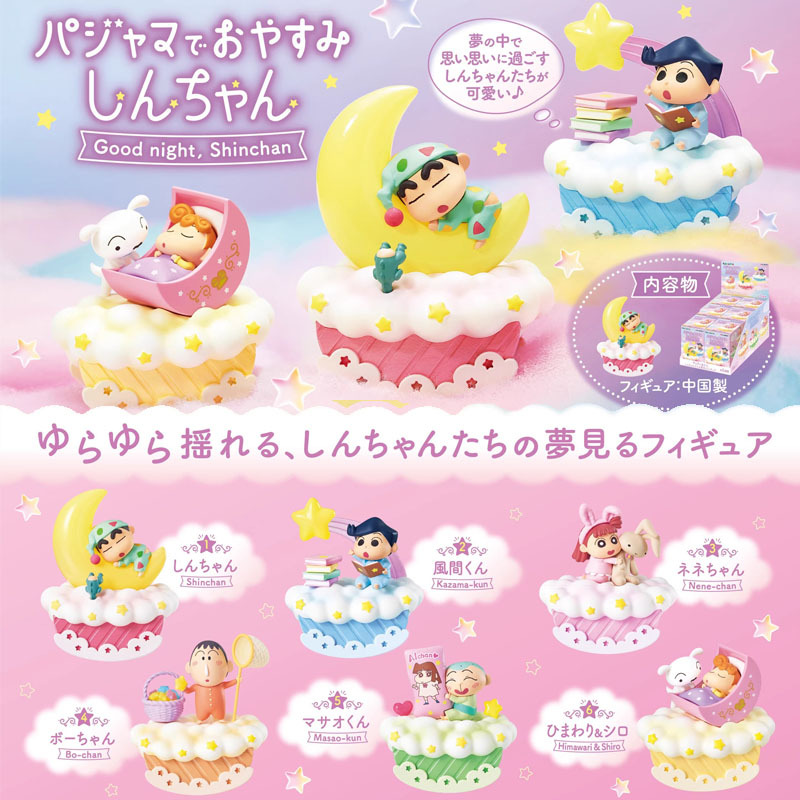 6種類のワックスはしんちゃんよりおやすみしんちゃんのパジャマの形のシーンを飾っています。