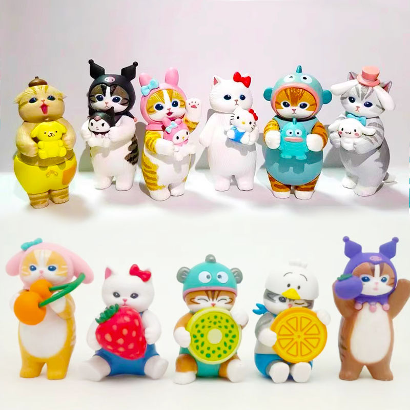 かわいい食いしん坊が頭をかぶっている猫の美楽ティクールな米醜い魚の形の小さな置物モデル