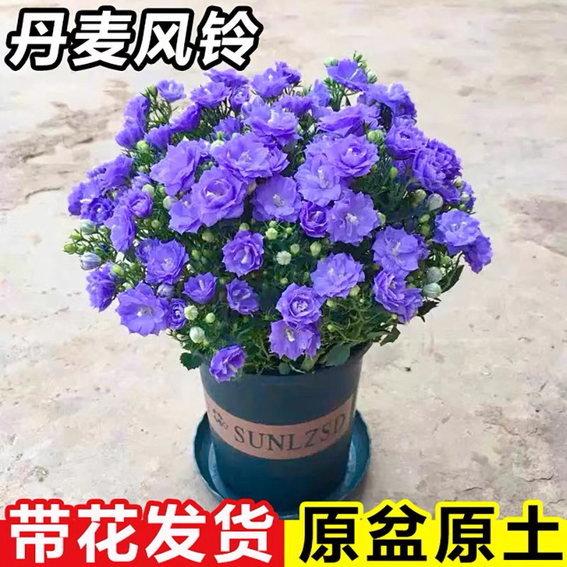 デンマーク紫風鈴鉢植え【つぼみ付き】四季咲きの八重咲きの屋内バルコニー緑植物を育てやすい
