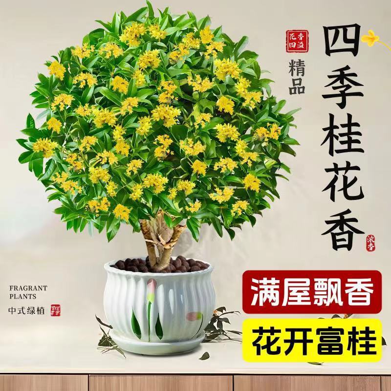 つぼみ付き】四季のキンモクセイの木は育てやすい、香りの強い鉢植え、ベランダの中庭、金木犀の花、古い杭、屋内でも育てやすい
