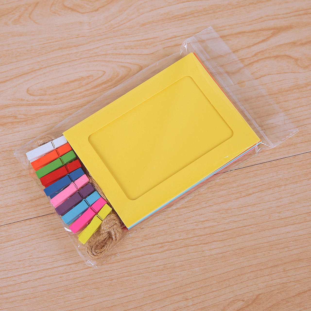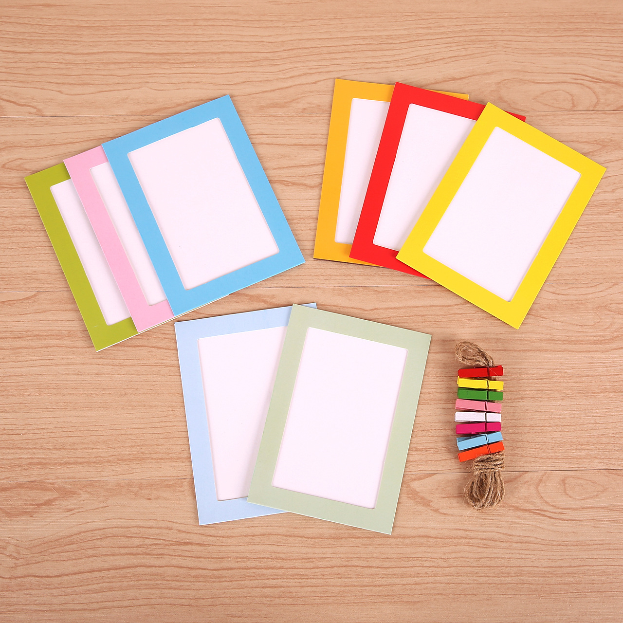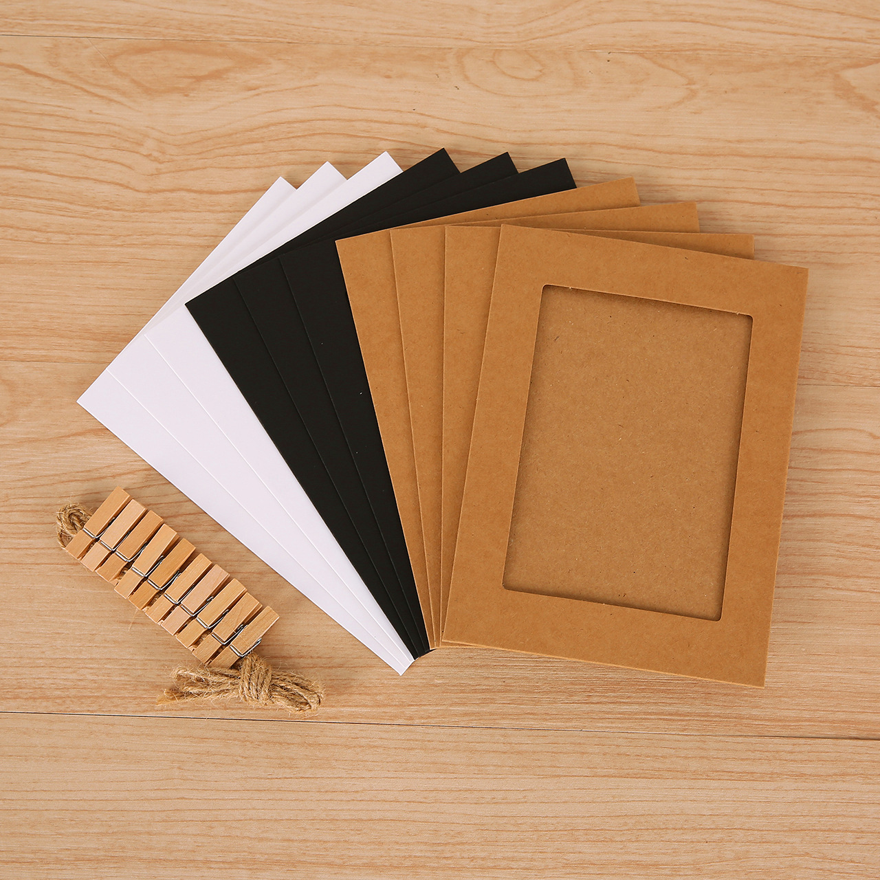 6インチクラフト紙三色30枚掛け紙フォトフレーム卸売り創意組み合わせ写真壁と麻紐木クリップ