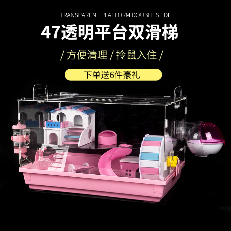 ハムスターケージ二重別荘城47アクリル滑り台基礎ケージハムスター巣ペット金糸熊大別荘