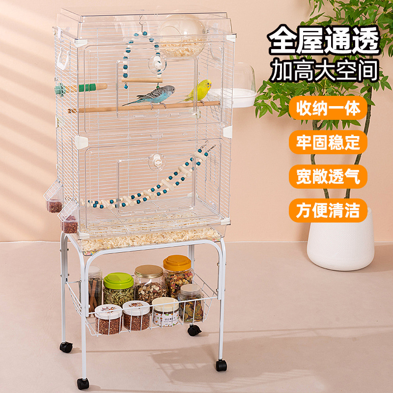 透明な鳥かごの家庭用の大きいサイズの虎皮の玄鳳のオウムの繁殖のかごの新型のツグミの八兄の刺繍の真珠の鳥かご