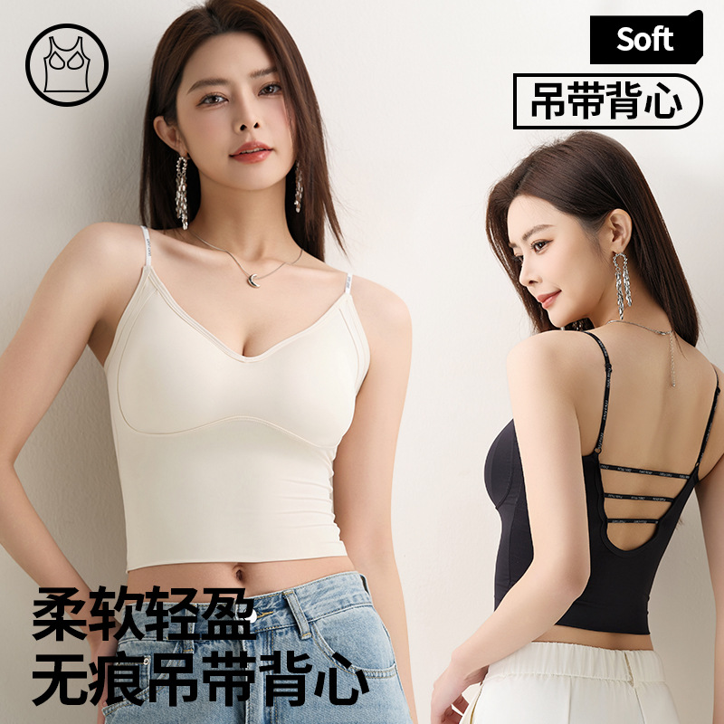 2025春夏の新型の美背のガーターのアルファベットの肩ベルトの無痕の氷の糸のベストの小さい胸は集まって大きい内を現して胸を拭きます。