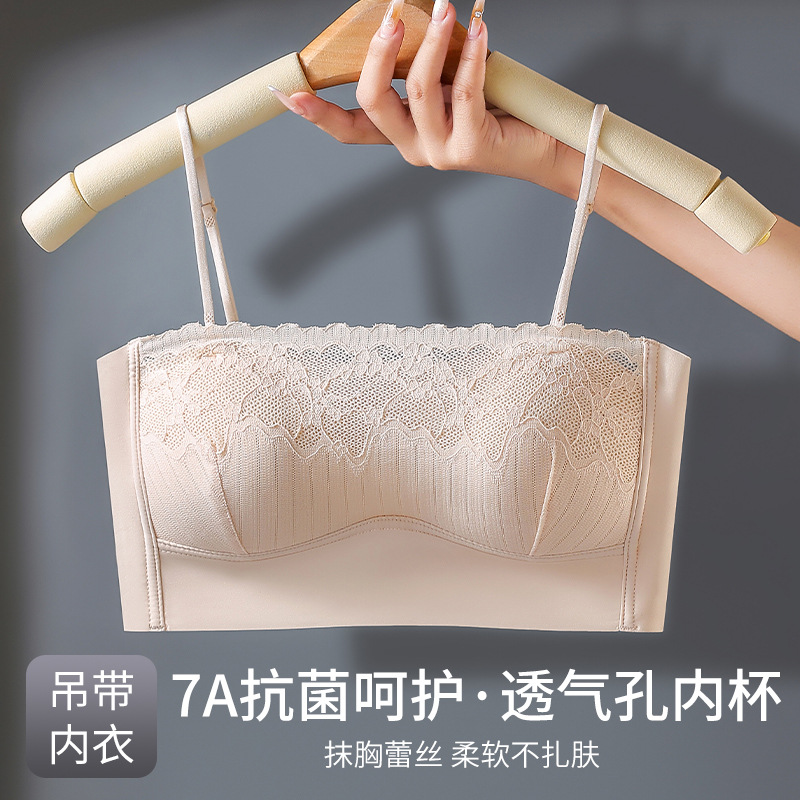 アイスシルクシームレスサスペンダーセクシーな美しい背中スパゲッティストラップ下着女性の小さな胸プッシュアップノンワイヤー固定クロスラップ胸