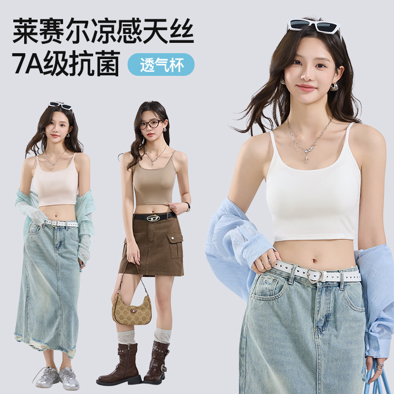 白の小さいサスペンダーのベストの女性の2025新型の中で夏の外で服を着て副乳を遮って光の袖なしの底の上着を防ぎます。