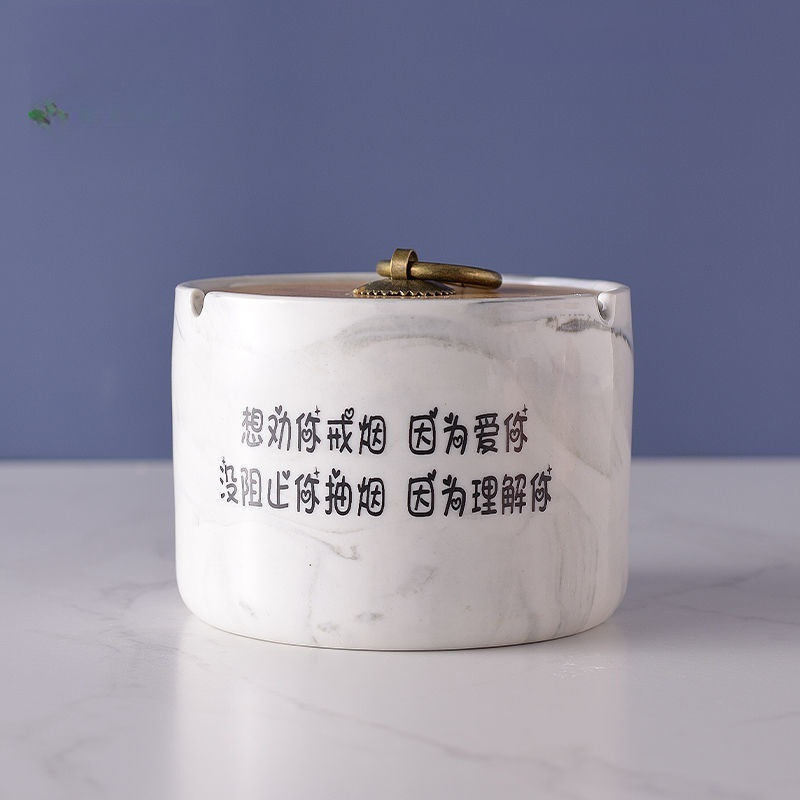 新しい灰皿の大理石の紋様の個性の事務室の家庭用の高い顔は蓋を持って国境を越えて代行します。