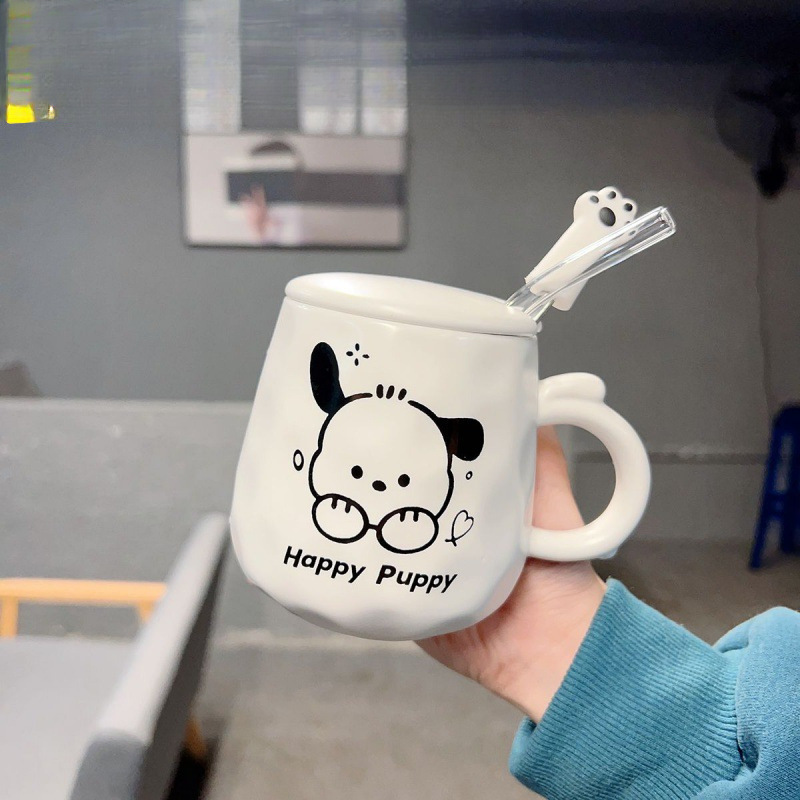 かわいい漫画高颜値セラミックマグカップ蓋付きスプーン少女心小衆夏カップコーヒーカップ
