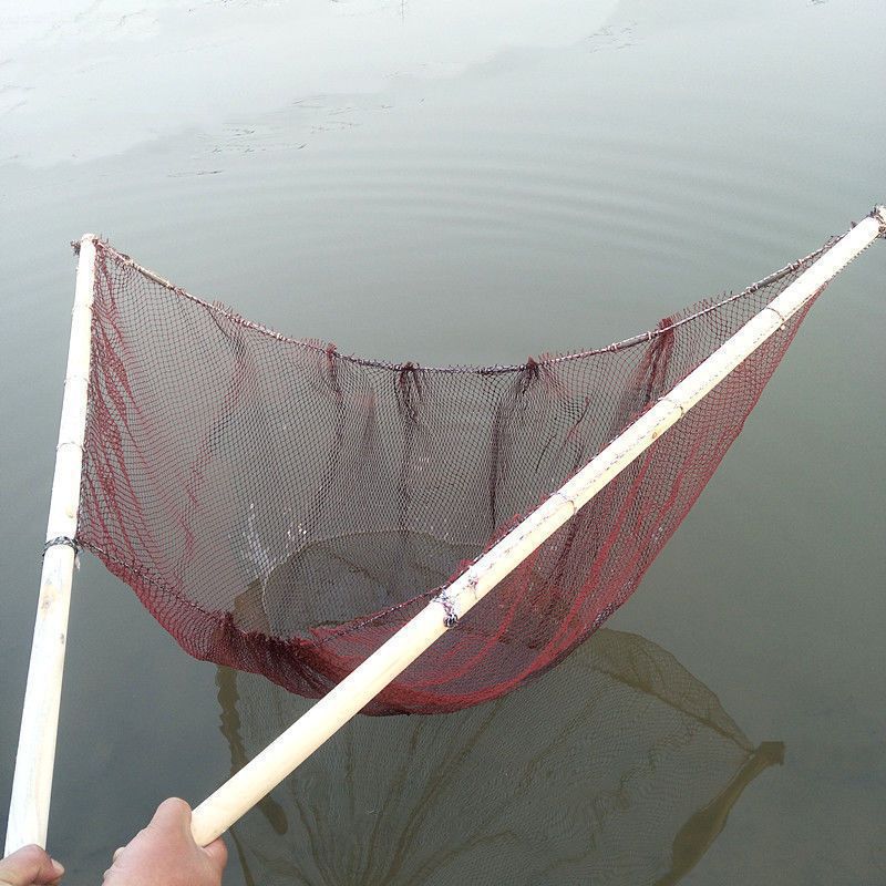 携帯型の古い手でネットを持ち上げてエビを押します。