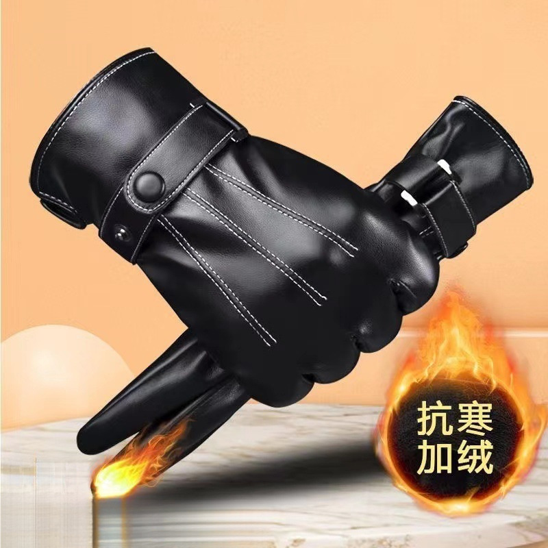 タッチパネル革手袋冬防寒自転車にベルベットをつけて防風防水保温冬にバイクに乗る