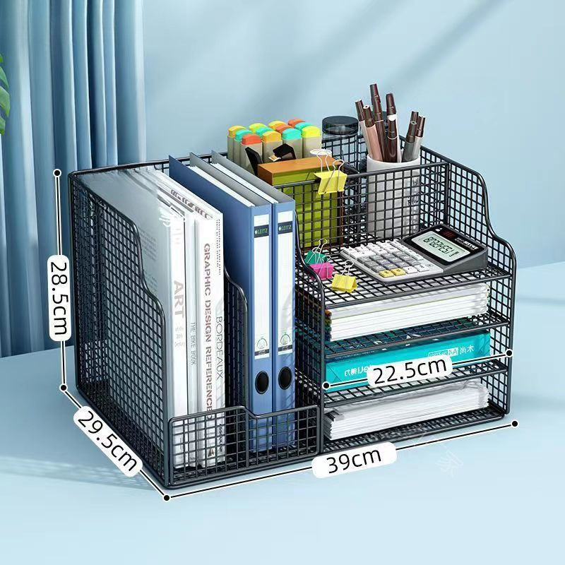 事務机の収納用品のファイルの棚は本の紙の縦型の多層の鉄の芸の学生の資料の上で本棚を置きます。