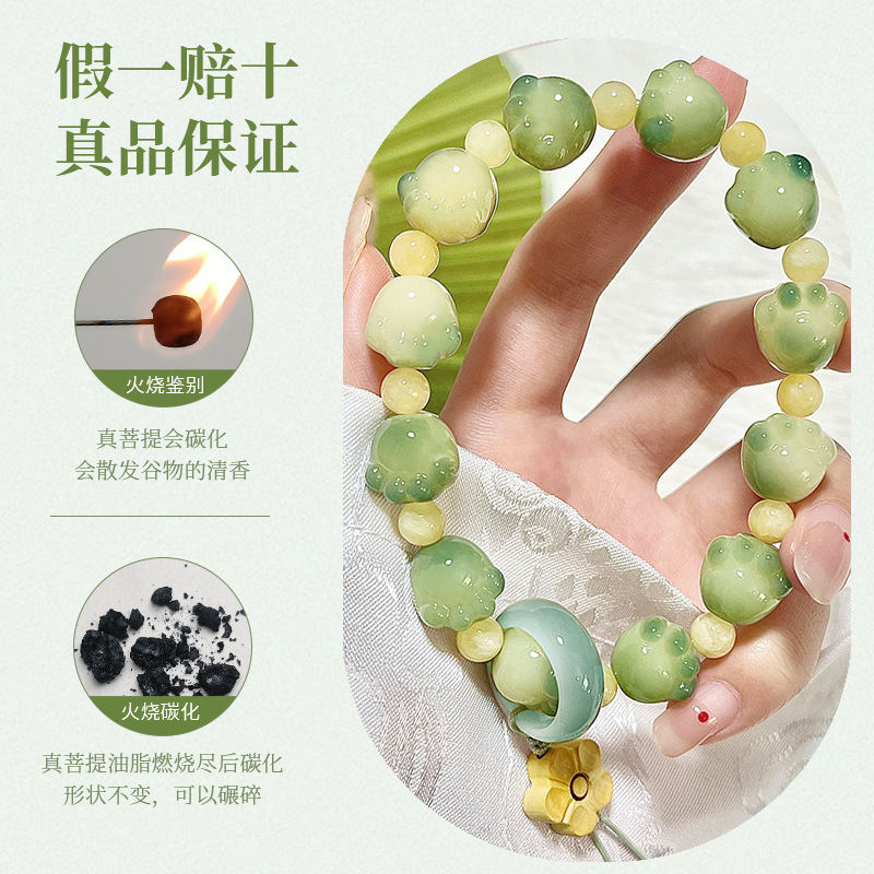 本物の小さなライム猫の爪菩提ブレスレット炭焼き猫白翡翠菩提根手持ち女性プレートおもちゃ仏ビーズ