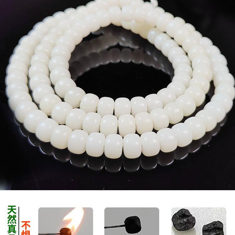 本物の天然白翡翠菩提根ブレスレット 108 ビーズロザリオ穴加工高研磨古いタイプのバレルビーズラウンドビーズ