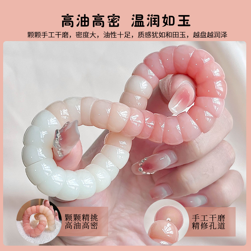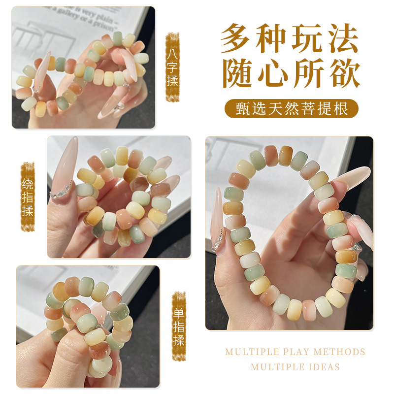 本物のピーチパウダーグラデーション豚腸白翡翠菩提根ブレスレット女子学生ブレスレット菩提樹文玩仏