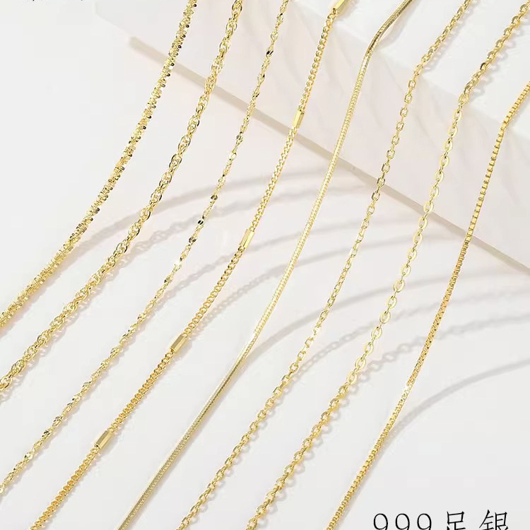 純正品999純銀ネックレス女性18k金無ペンダント銀金メッキチェーンストラップ素鎖ゴールドs925バレンタインデー
