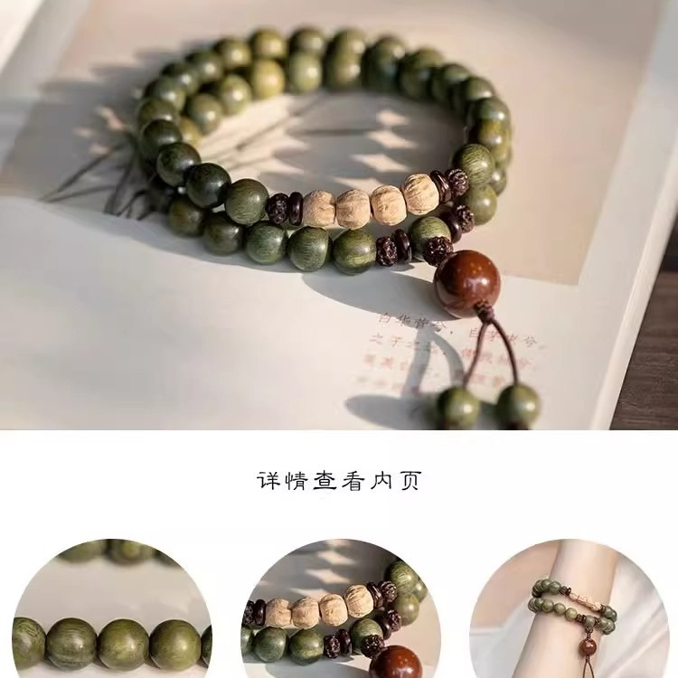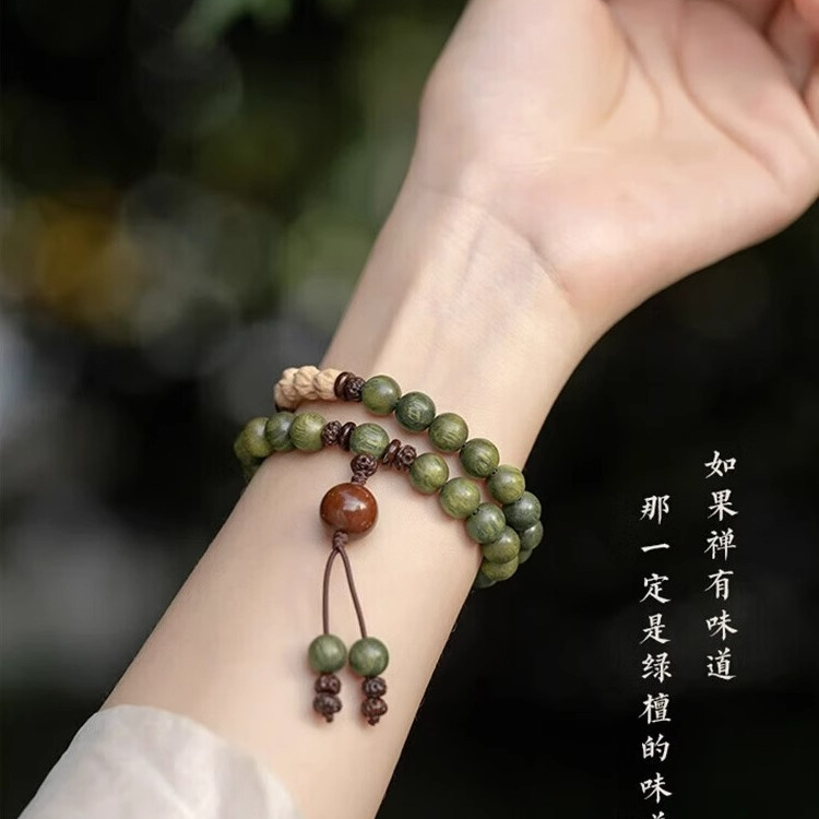 本物の緑白檀仏珠、パッションシード、ダブルサークルブレスレット、手持ち白檀ブレスレット、女性用木製幸運の愛