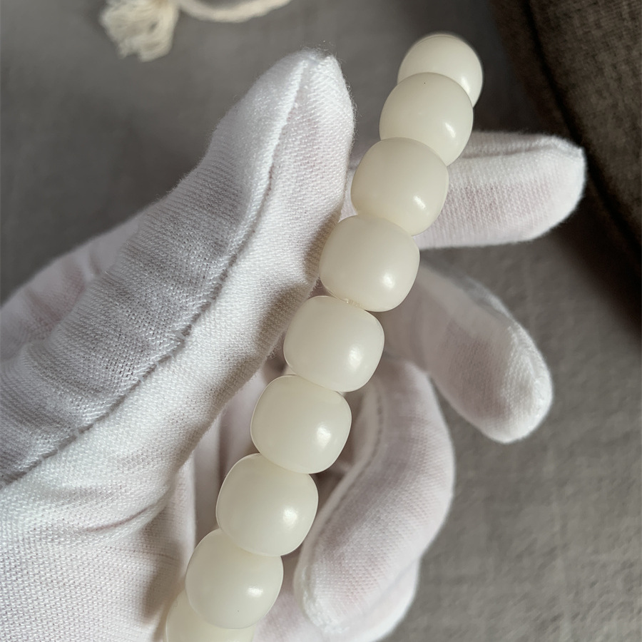 本物の天然オリジナルエコロジー高密度白翡翠菩提根ブレスレット、柔らかい男性と女性のシングルサークル本物の古いタイプのバレルビーズ