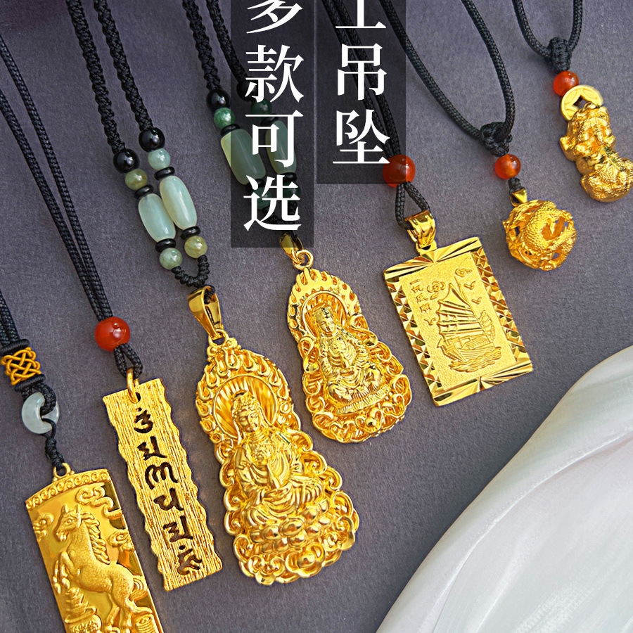 本物のメンズベトナムサンドゴールド、すぐに富を手に入れましょう、貔貅ドラゴンボール、順風満帆、観音メッキ24Kカラーゴールドペンダント
