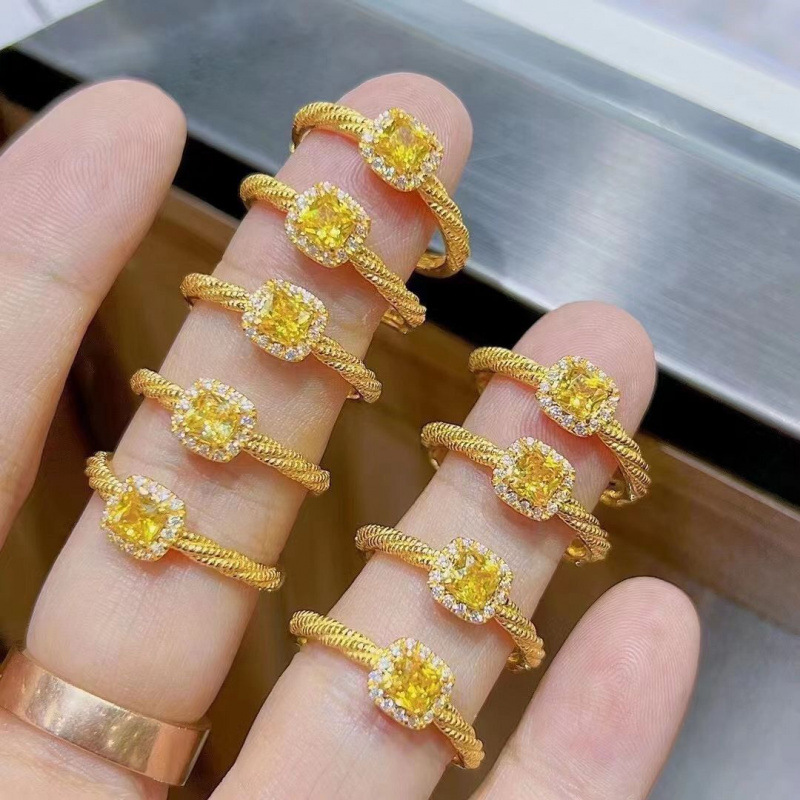 正規品【カラーパッケージ返品】Xiaohongshuの人気のスーパーフラッシュイエローダイヤモンドリングは、甘い小さな角砂糖の輝くダイヤモンドリングです