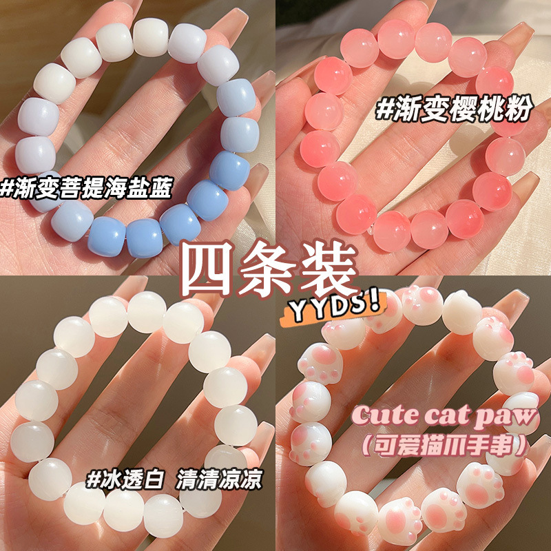 本物の模造白子玉ブレスレット、女性用、グラデーションビーズブレスレット、女の子用、小学生用、指を包み込む柔らかい