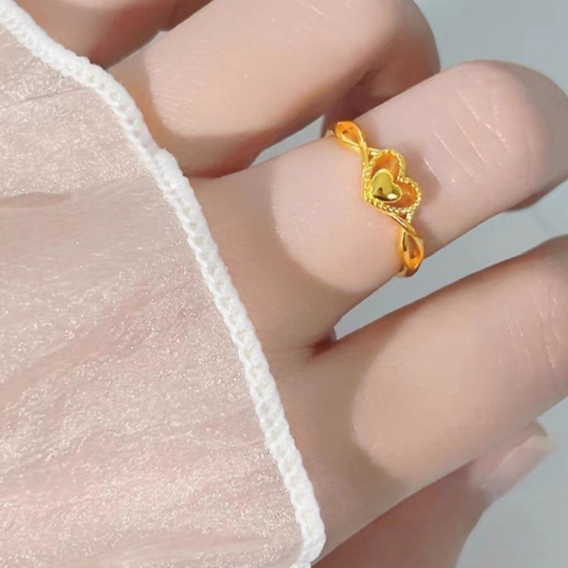 本物のサンドゴールドリング、非色開口部、調節可能、内側と外側が同じ色、ハートトゥハート、洗えるリング、ファッショナブルなギフト