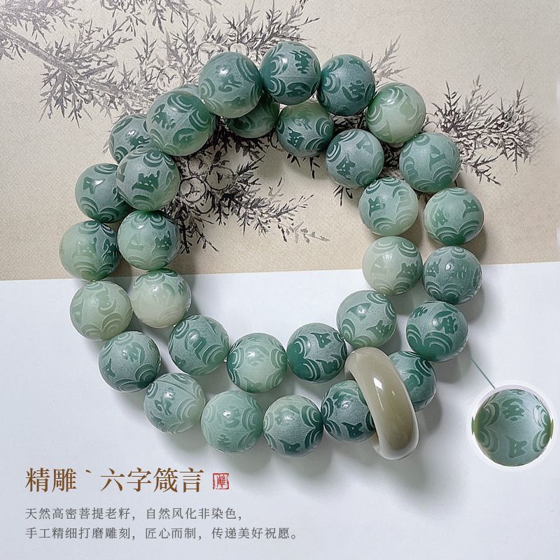 本物の細かい菩提のブレスレット、六字格言、丸いビーズ、白い翡翠の菩提の種、手持ちの仏陀のビーズ、手遊び用のビーズ