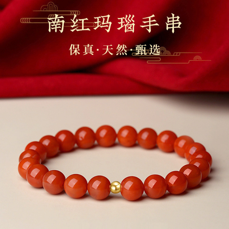 本物の天然涼山素材、南紅、その他のブレスレット、柿の赤、フルカラー、フルミートブレスレット、男性向けの高級干支年