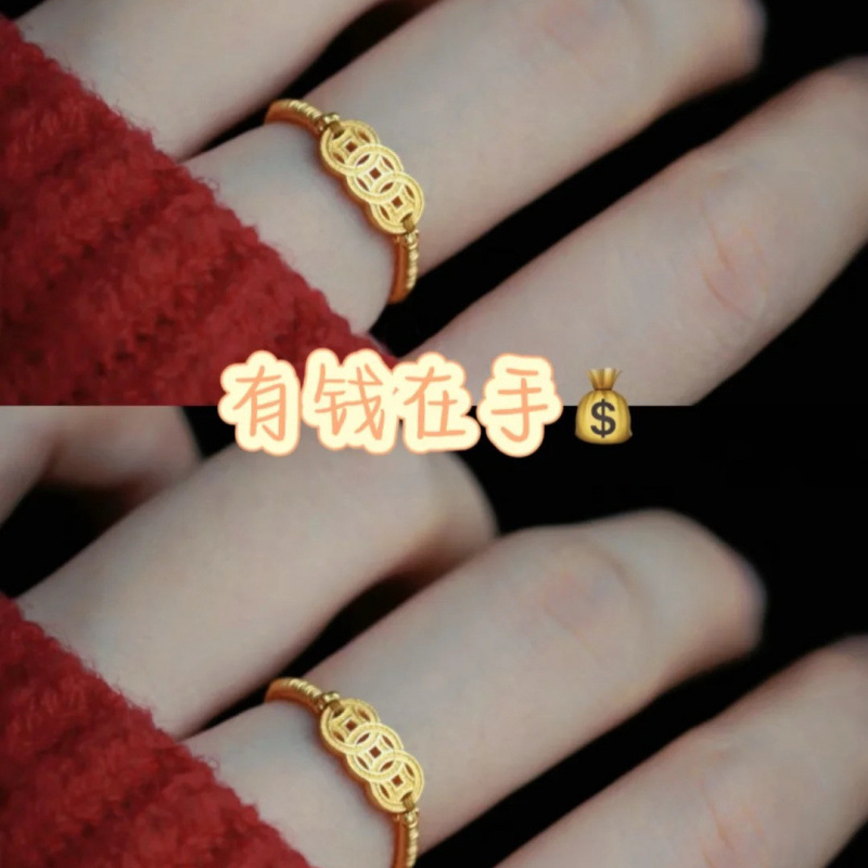 女性用の本物の富のコインリング、レトロなその他のお金、新しい中国風の国民的トレンド、富を引き寄せるお金のリング、富を引き寄せる色のリング