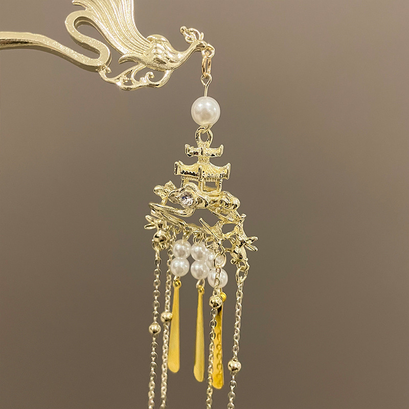 本物の古代風の金鶴かんざし、女性の馬面スカート、漢服、高級タッセル、中国風鶴チャイナドレス