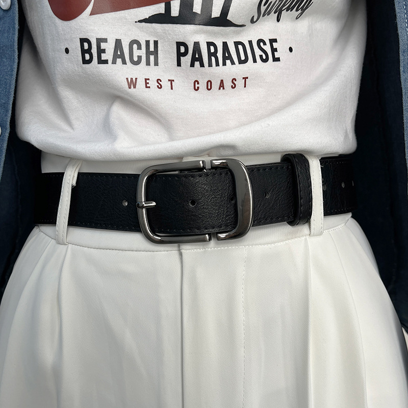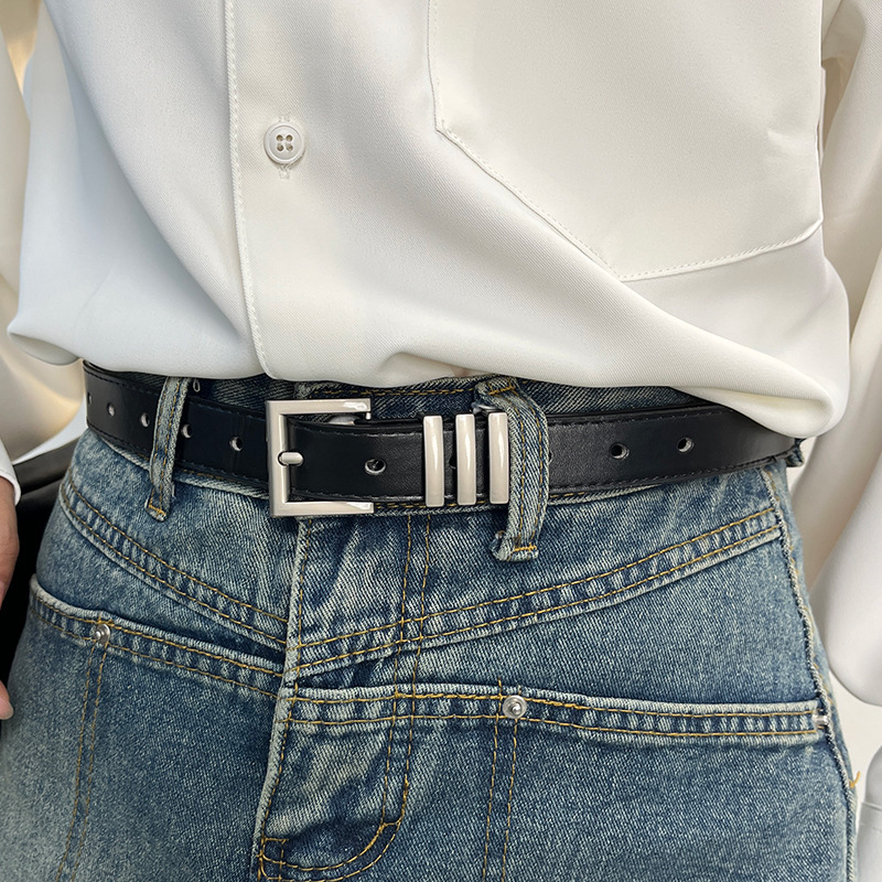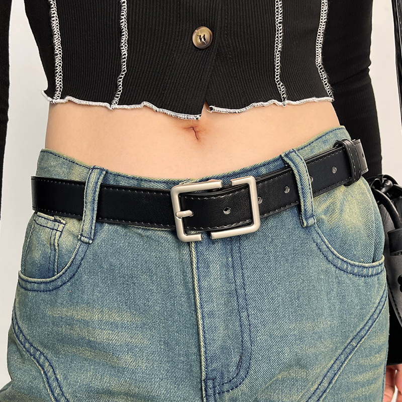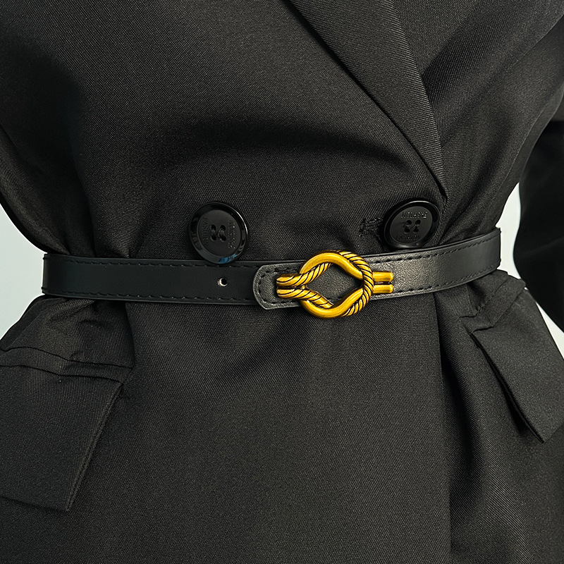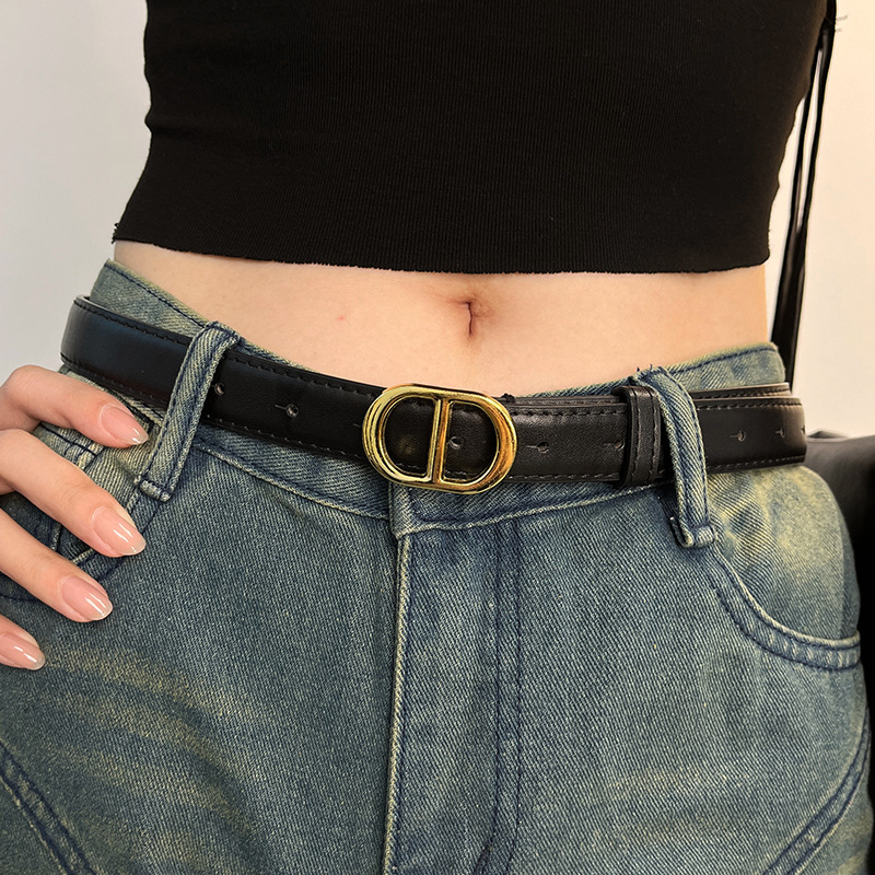 女性ベルト黒2024新型流行小衆潮流韓国版は痩せてジーンズベルトの女性ピンボタンをつけている