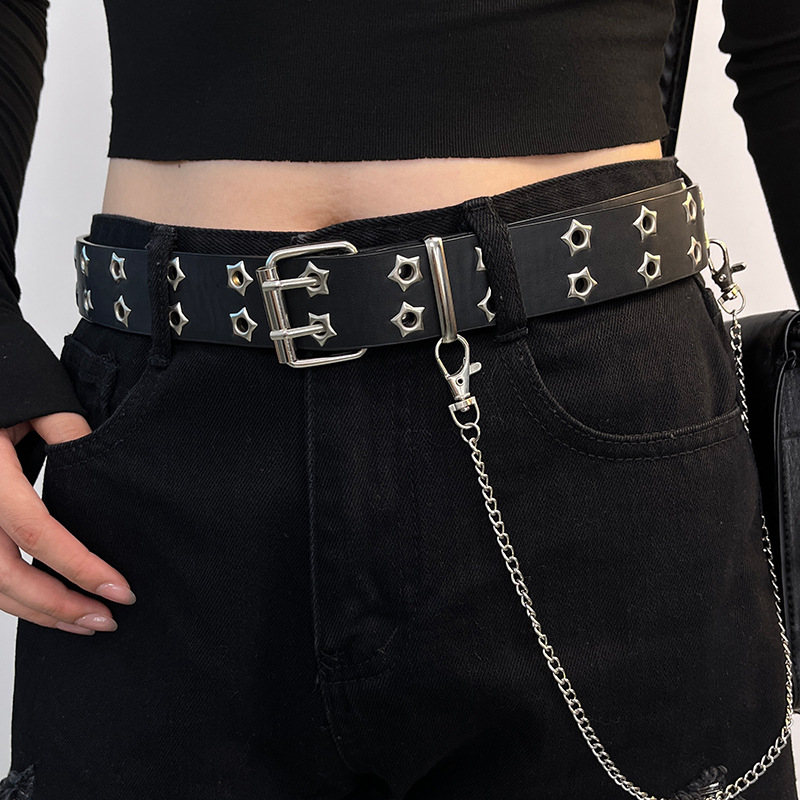 新しいベルトの女性のクールなinsベルトの欧米のパンクの双列の風のズボンのチェーンはジーパンを飾ります。
