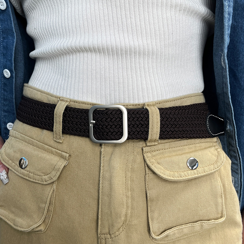 ベルトレディースニットバックル高級新作ファッションシンプル百合通用ins風ベルト学生装飾ジーンズ
