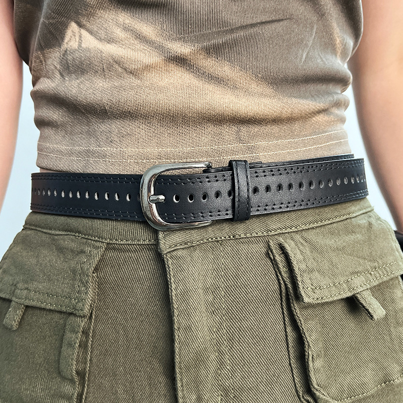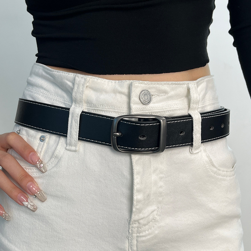 レトロな針は黒いベルトの女性ins風のジーパンのベルトを掛けます。